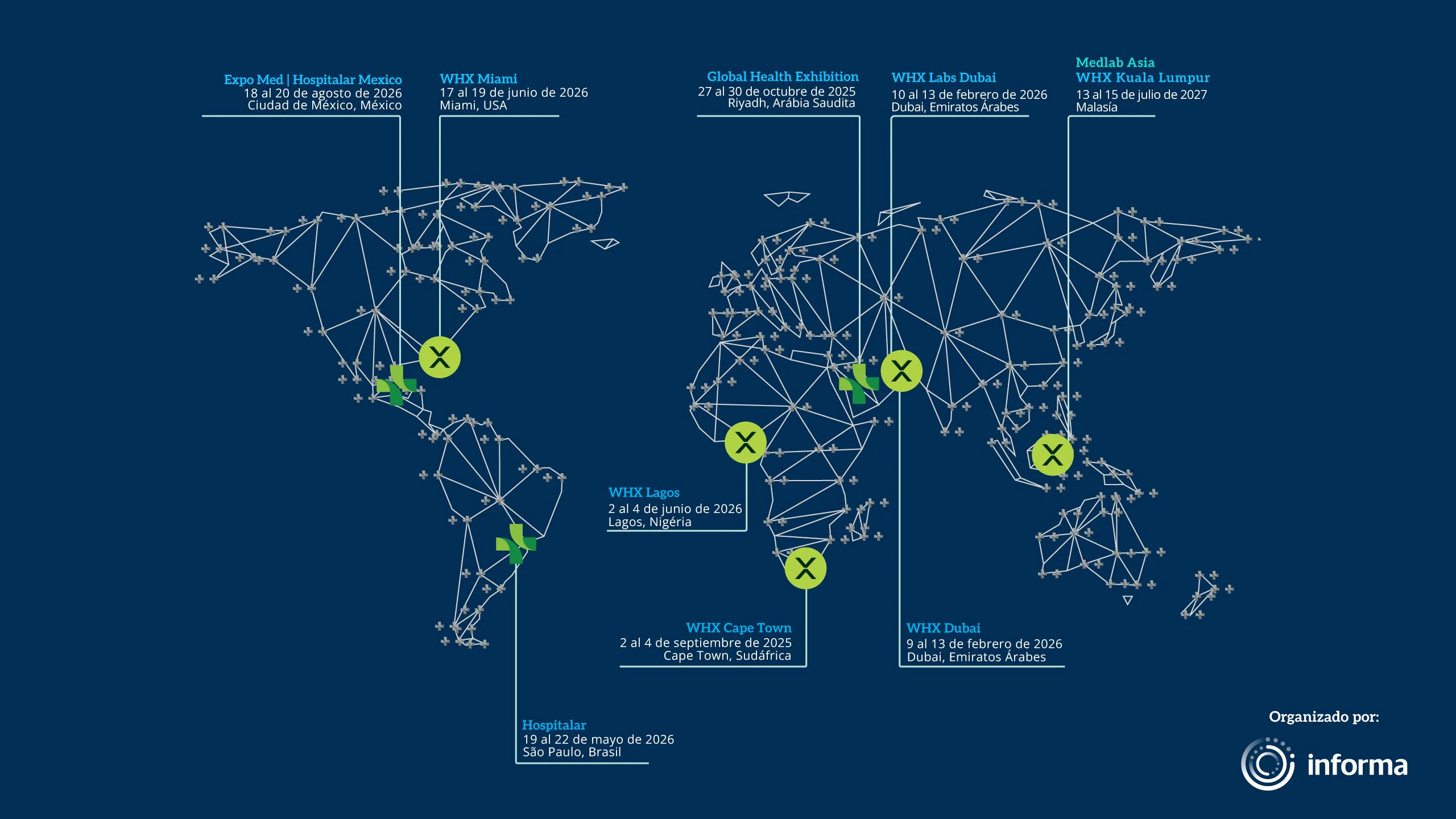 Hospitalar, WHX (antes Arab Health), WHX Miami, entre otros...